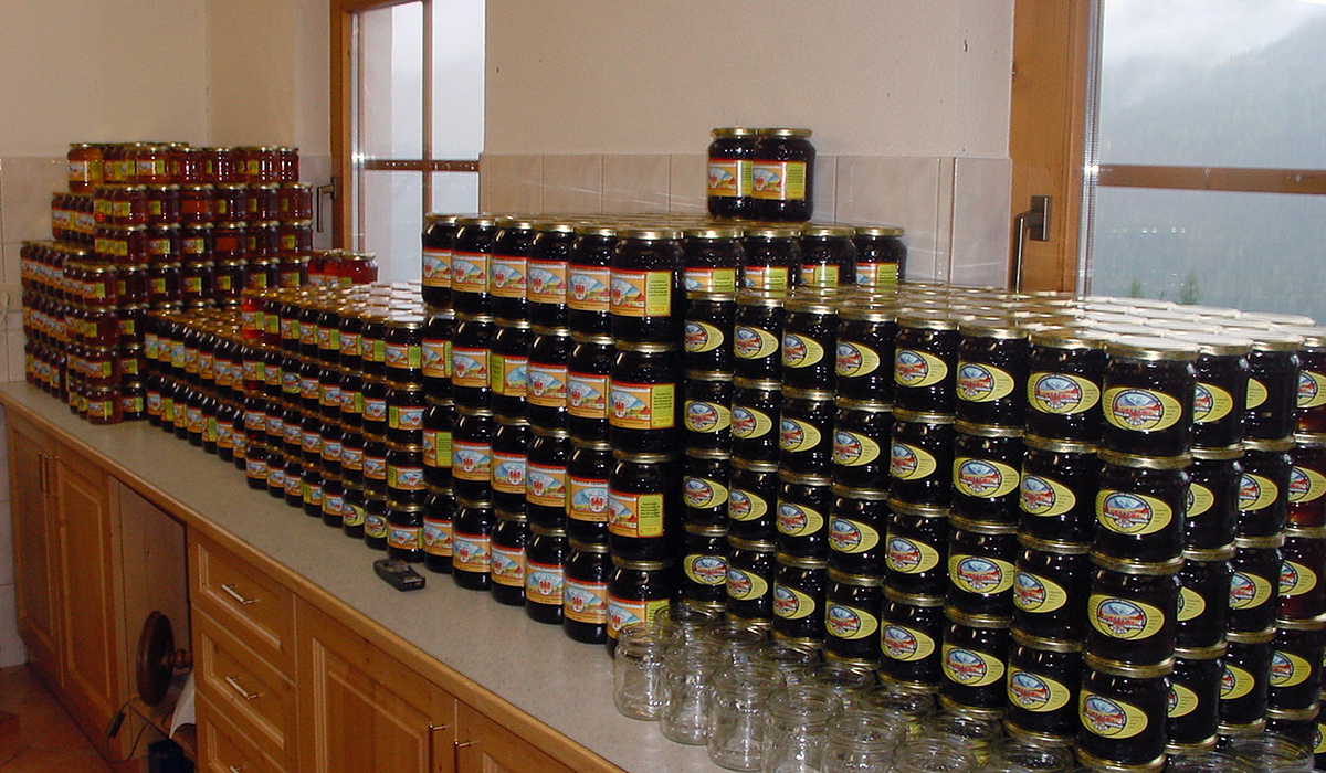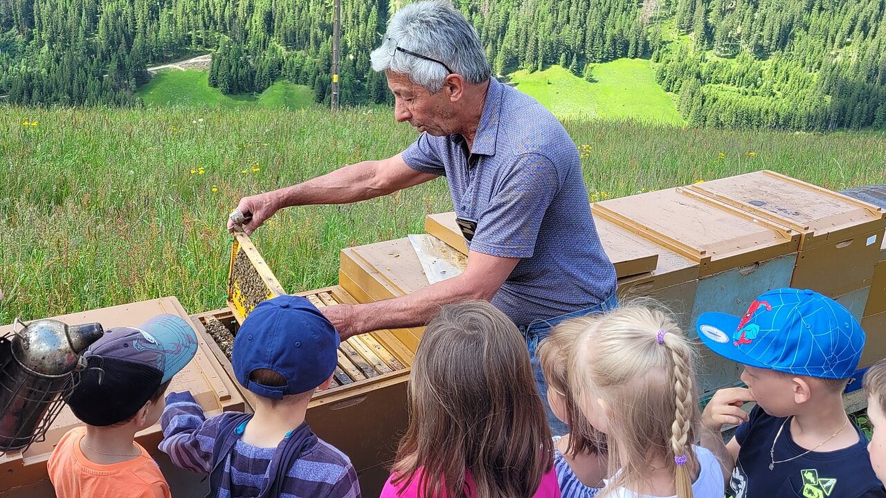 Neben der kleinen Berglandwirtschaft und der Vermietung betreuen wir noch eine Imkerei mit eigener Königinnenzucht. Mit den beiden Töchtern, Manuela und Theresa bewirtschaften wir ca. 150 Bienenvölker. Diese produzieren einen überaus leckeren und hochwertigen Honig aus dem Nektar von hauptsächlich Löwenzahn, Heidelbeere, Wald, Himbeere, Alpenrose und den vielfältig blühenden Bergwiesen. Somit ist unser Honig eine Mischung aus verschiedenen Blüten und Kräutern.